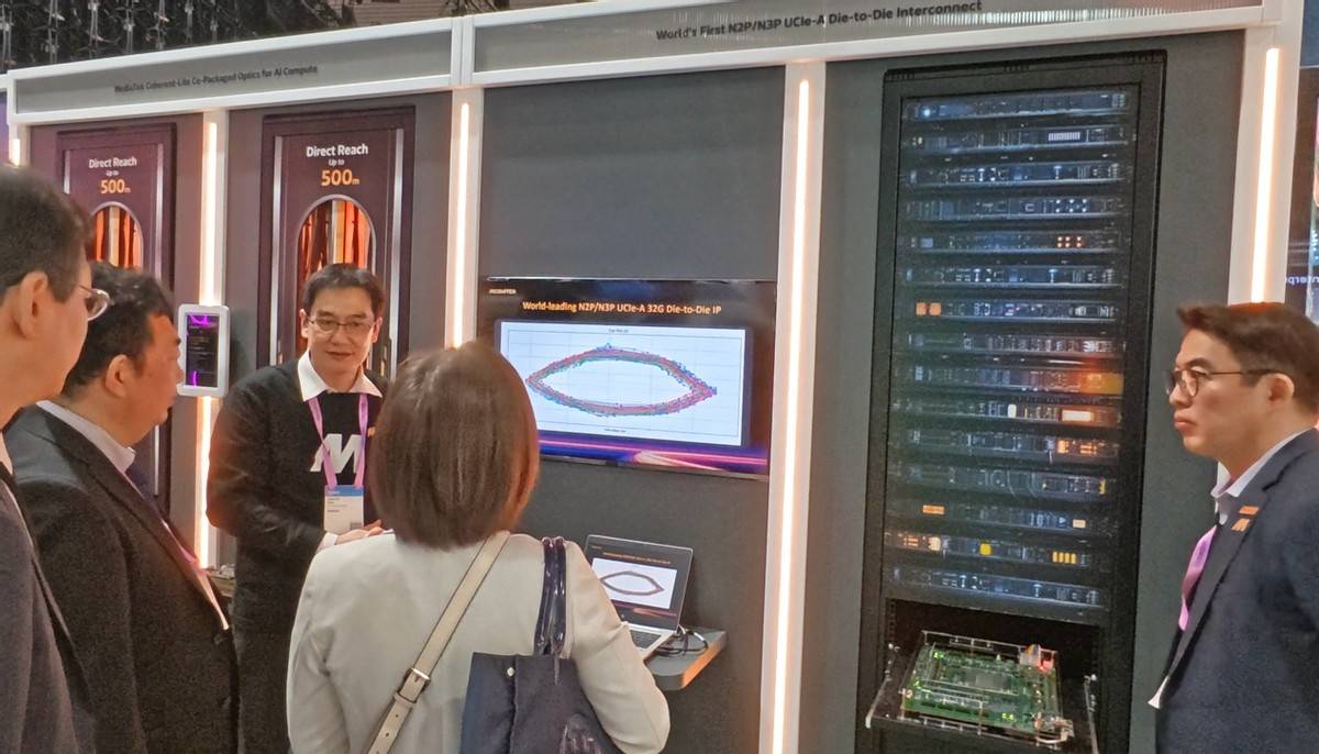 在AI时代,芯片、机柜、数据中心的互连与能效将成为AI规模化部署的决定性变量,大模型训练和推理一旦上量,最关键的就是带宽、时延和功耗,这是产业界所面临的共同瓶颈。联发科在MWC 2026上推出了为die-to-die 数据互连所设计的UCIe-Advanced IP,全球率先完成台积电2nm和3nm先进制程的硅验证(Silicon-validated),支持先进封装方法如硅中阶层(Silicon interposer)与硅桥(Silicon bridge),具备超低位元错误率(Bit error rate)、超低电力消耗与可达裸晶边缘10 Tbps/mm的高带宽密度。简单来说就是让互连带宽更宽,更省电、更可靠。